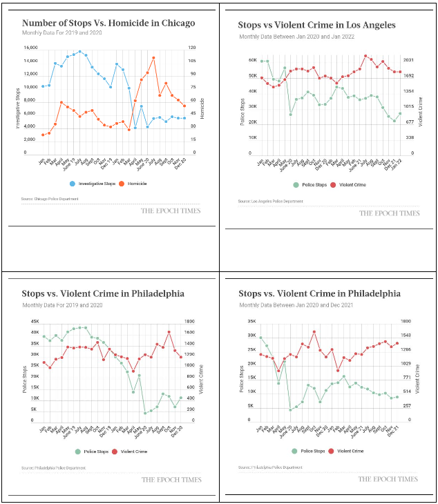 It’s common sense that defunding the police will increase violent crimes. A recent article by Cara Ding at the Epoch Times proves the obvious. She got her data from the actual police departments. I can’t thank Cara Ding, and the Epoch Times, enough for documenting this in the following police charts.